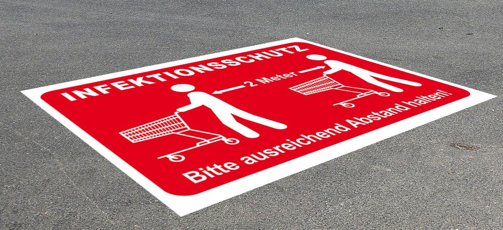 Schicken Sie uns ihr Motiv, wie STOPP ! Bitte 2 Meter Abstand zum nächsten Kunden halten! oder Bitte Abstand halten!