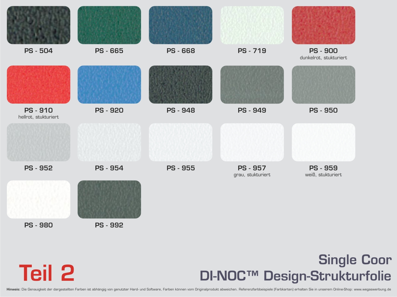 - tlw. strukturierter oder seidenmatte und schmutzabweisende Oberfläche, antibakteriell beschichtet (sehr hygienisch), Foliendicke 0,19 mm bis 0,21 mm