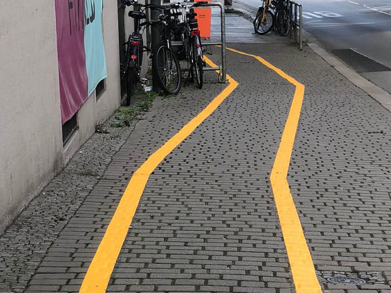 Die Fahrbahnmarkierung mit einem reflektierenden und antirutsch Oberfläche ist bestens als Bodenleitsystem im Lager und Betrieb, als Bodenmarkierung auf Straßen, Wegen, Parkplätze, Baustellen geeignet.