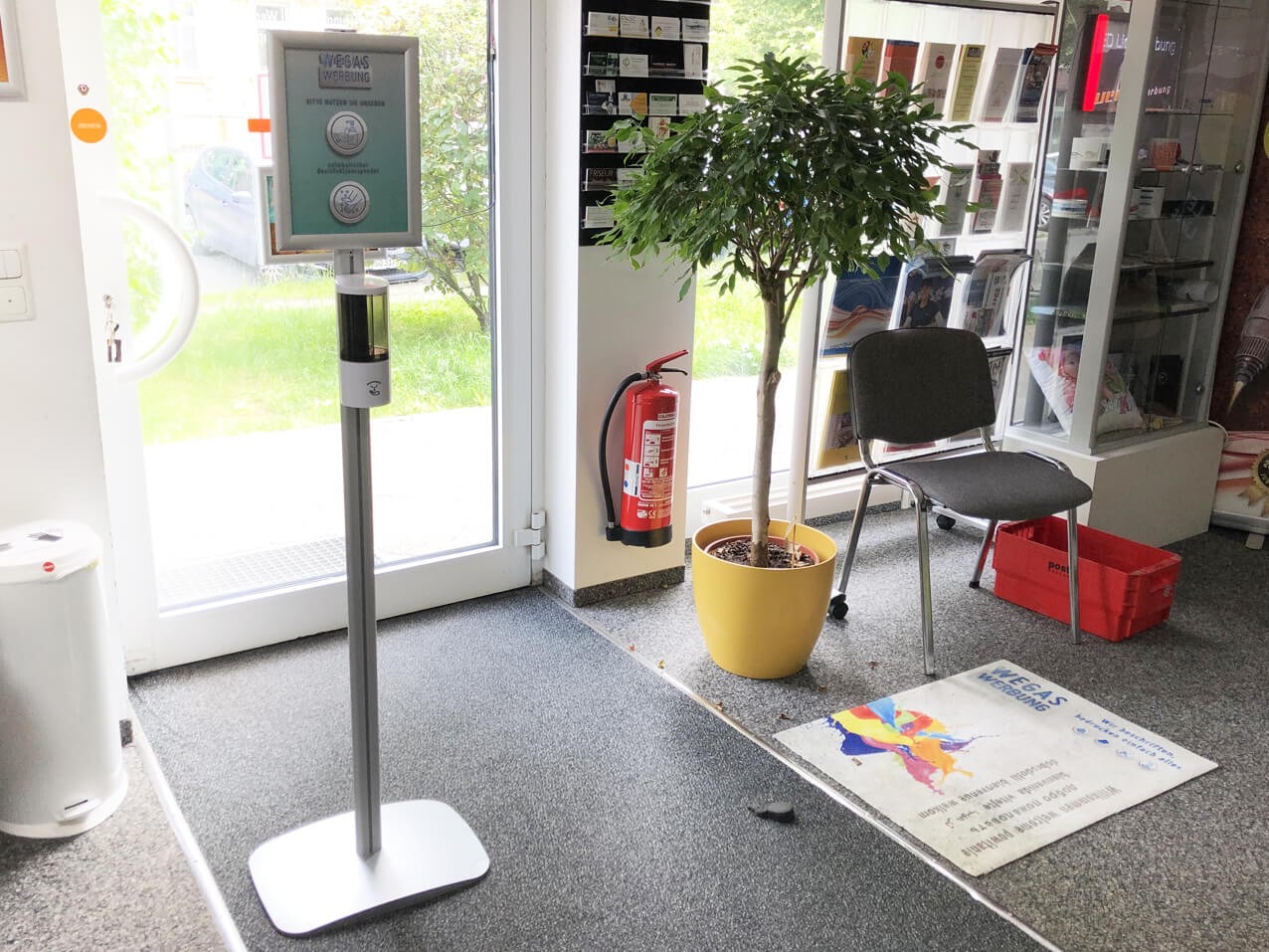 - zum Aufstellen im Eingangsbereich, Räumen, Theke, Foyer in Behörden, Schulen, Firma, Praxen, Hotel, Gaststätten, in Apotheken, Tankstellen, etc.