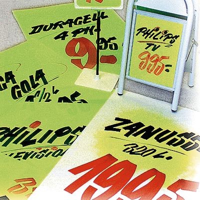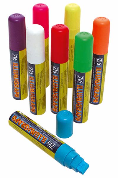 • zum beschreiben, malen, werben mit Malstifte, Malspray, Boardmarker, Schildertinte, Filzstifte