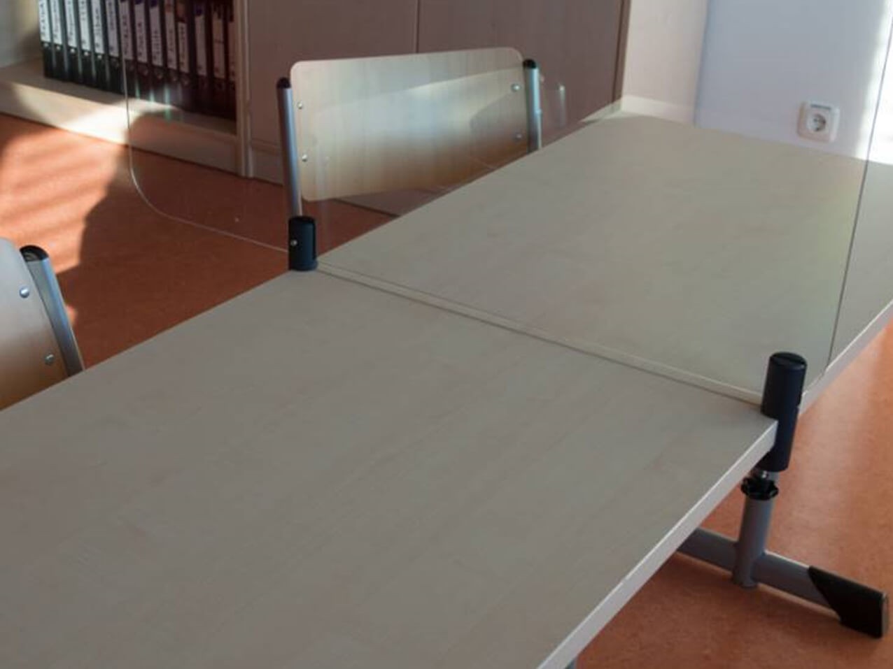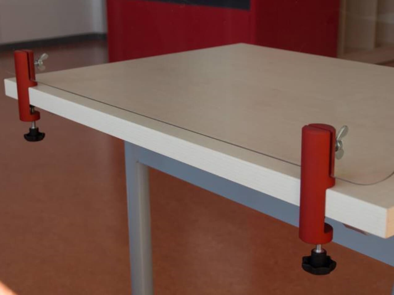 - feste Klemmung am Tisch, Theke für Hustschutz, Infektionsschutzwand, Trennwand an Kasse, Verkaufstheken, in Schulen, Universitäten, Gaststätten, Ministerium, Kanzlei, Kantinen, Büros, ...