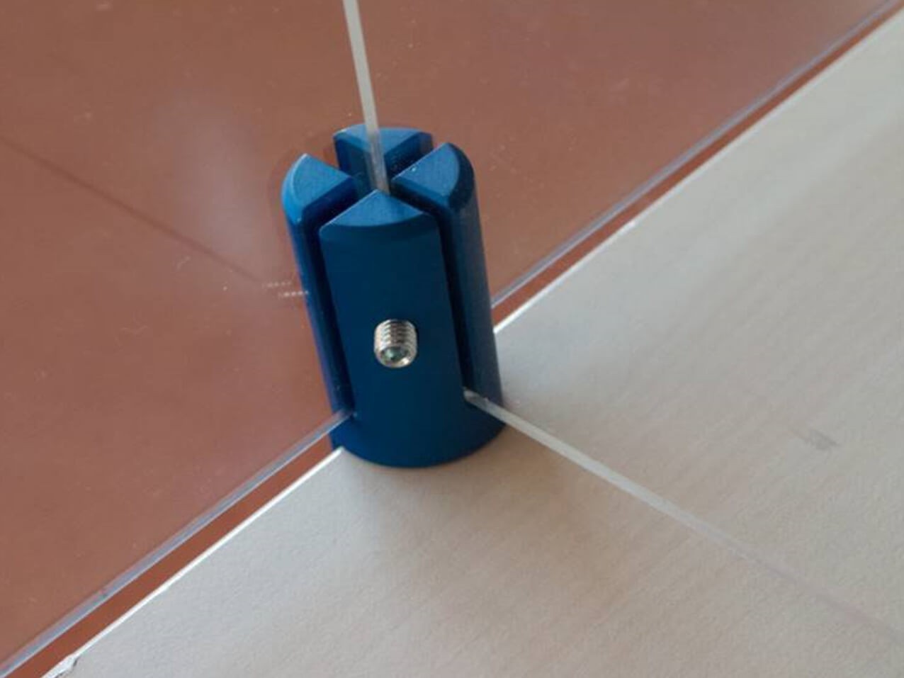 - 3 Varianten stehen zur Verfügung: 1. Klemme Universal mit einem Schlitz parallel zur Tischkante; 2. Klemme Universal mit einem Schlitz senkrecht zur Tischkante; 3. Klemme Universal mit Kreuzschlitz