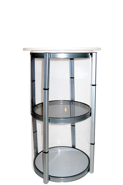 • runde Messetheke oder Vitrine, sehr leicht aufzubauen