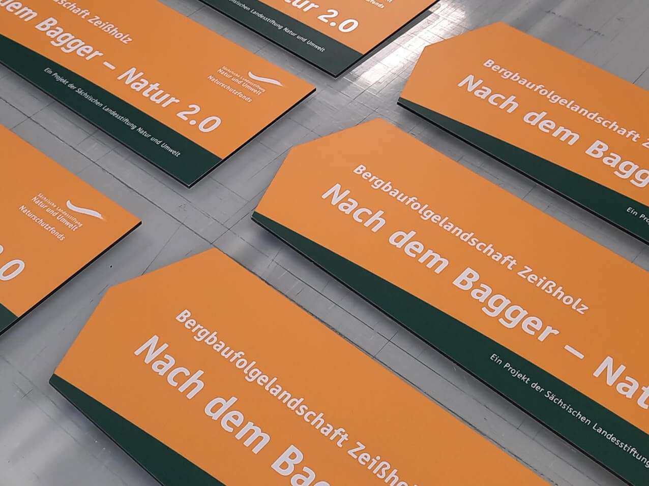 • Mindestgröße für Alu-Verbund Schilder: 10 cm je Seitenlänge, bis 150 cm breit und 300 cm lang