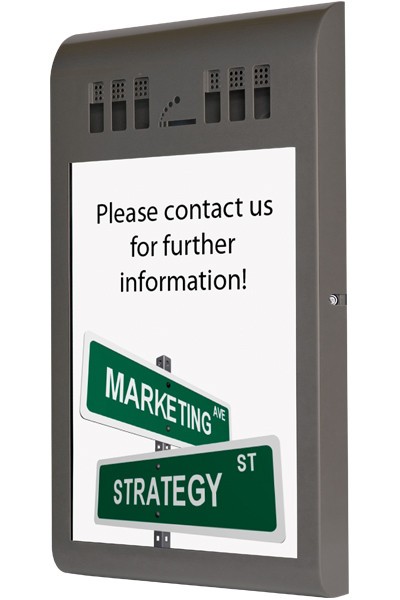 • Fronttür aus 2 starken 3mm Acrylscheiben zum Einfügen von Postern in Format A3 und A4