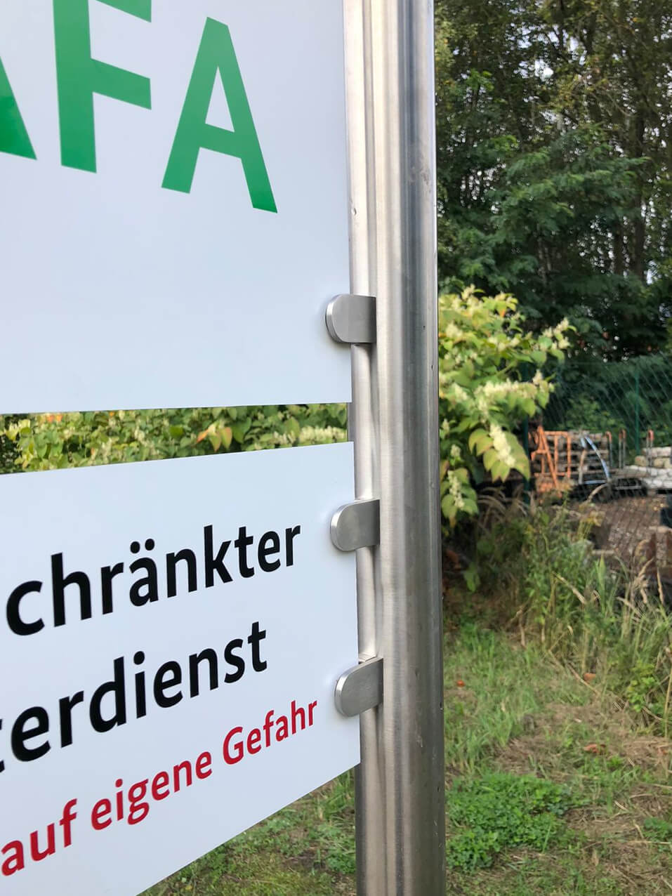 • für sehr große Schilder werden zusätzliche Sicherungsbolzen verwenden