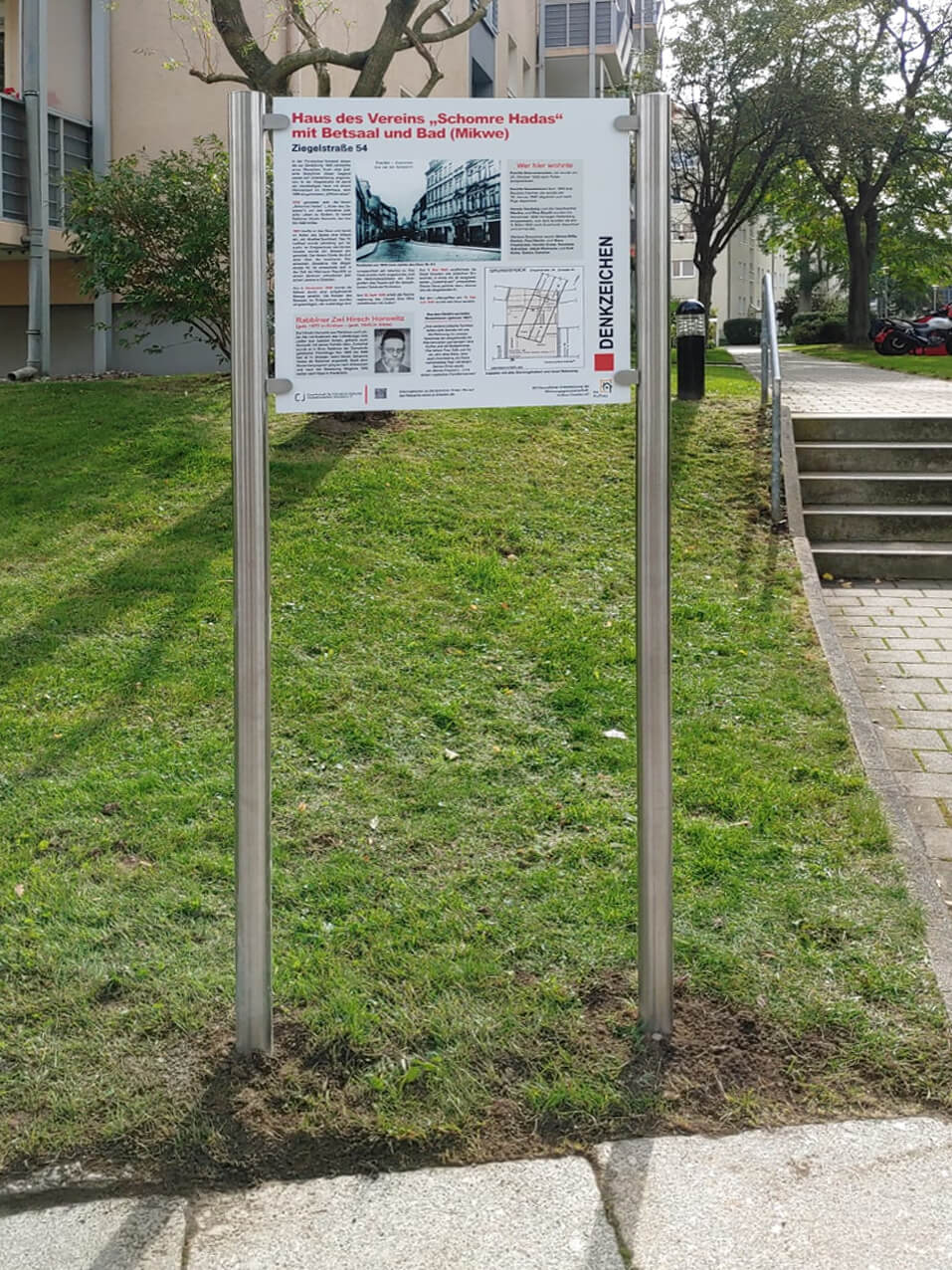 • einfache Gestell Montage mit beiliegenden Schrauben aufmontiert oder einbetoniert, Schilder einfach aufschrauben