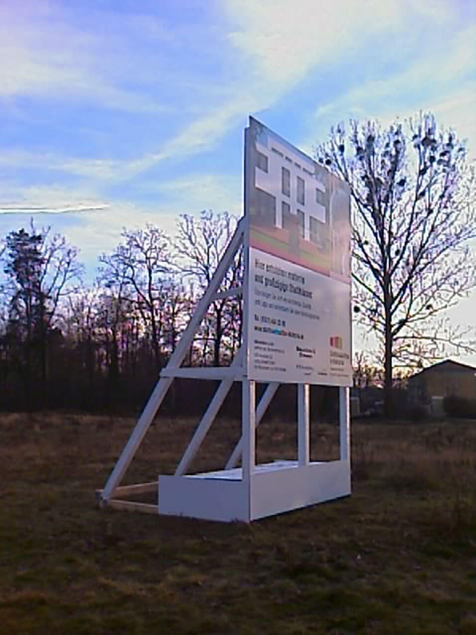 - Sie können von uns auch eine komplette Herstellung von Bauschilder, Bautafeln, Bauschildanlagen, Gestelle in Holz, Aluminium, feuerverzinkten Stahl erhalten