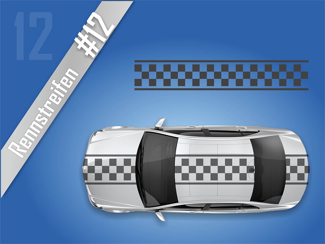 2-D Autofolien, Autostreifen Rennstreifen Mustang Carrera Streifen, Racing Karo Streifen, Rallye Streifen mit Vierecke, Race Flag Stripe #2112
