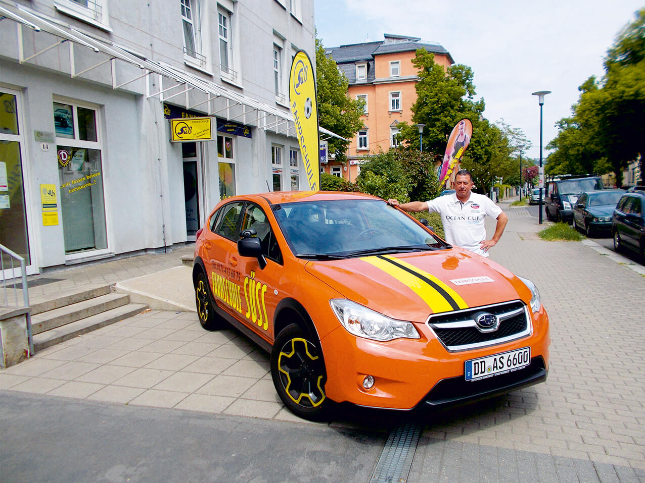 • 2. Variante: Aufkleber für 2 Türen 900 x 450 mm, 1 Heckscheibe 900 x 450 mm, 1 Motorhaube 900 x 300 mm, max. 5 Zeilen