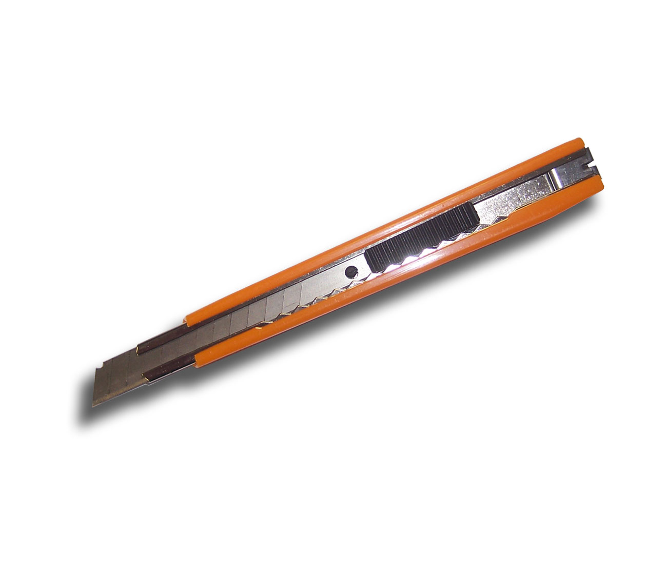 • hochwertiges Metall-Cuttermesser, erstklassige Qualität, liegt sehr gut in der Hand, präzise Schnittlinie durch Metallführung der Klinge