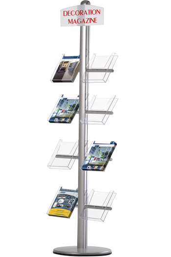 - Multi Stand/Aufsteller aus eloxiertem Aluminium mit einer Logoplatte (16x45cm) und 8 Stück Prospekthalter aus Polycarbonat