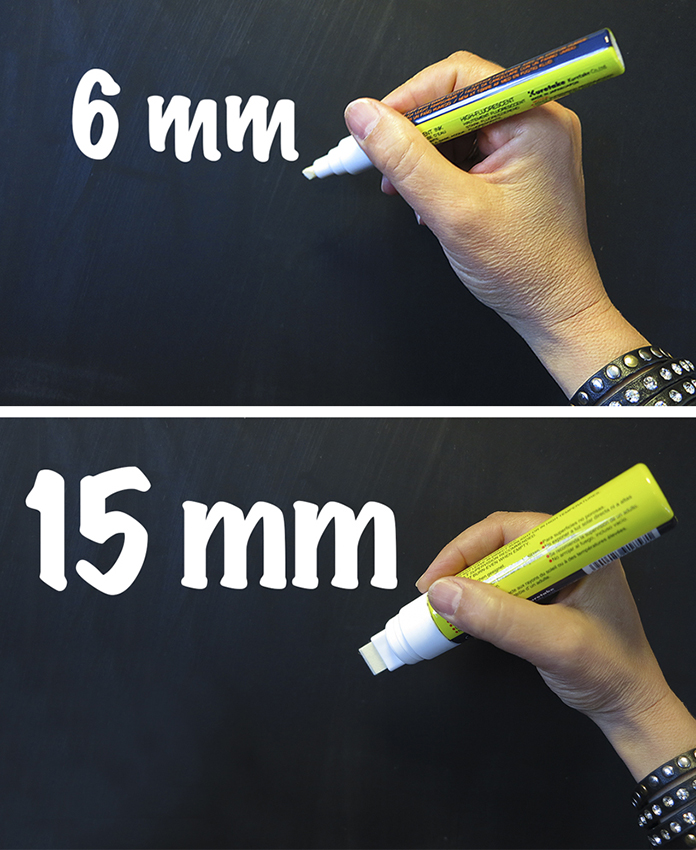 • Beschriftung mit Aufkleber Folienschnitt oder Aufkleber Foliendruck, siehe Beschriftung geschnitten oder gedruckt oder Kreide