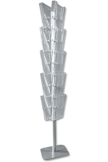 • Prospektständer aus Aluminium mit stabilem Fuß aus Stahl, Fuß quadratisch mit abgerundeten Ecken, pulverlackiert, Farbe grau