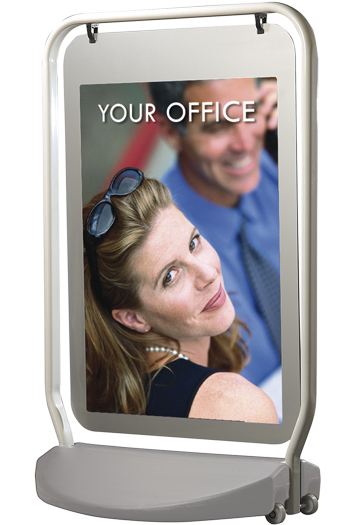 • Straßenaufsteller, Gestell aus Stahlrohr grau, galvanisiert und polyesterlackiert