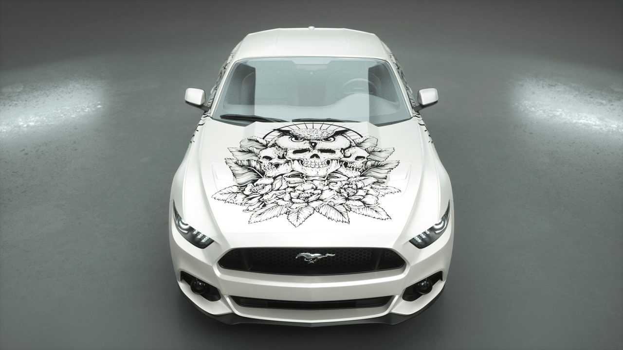 owl of the death white, Eule Tod Totenkopf Weiß Motiv Design Car Wrapping Look Autoaufkleber, Autovollfolierung mit Montage