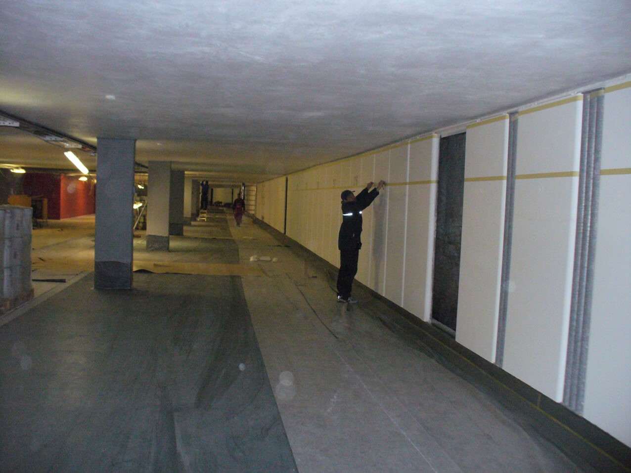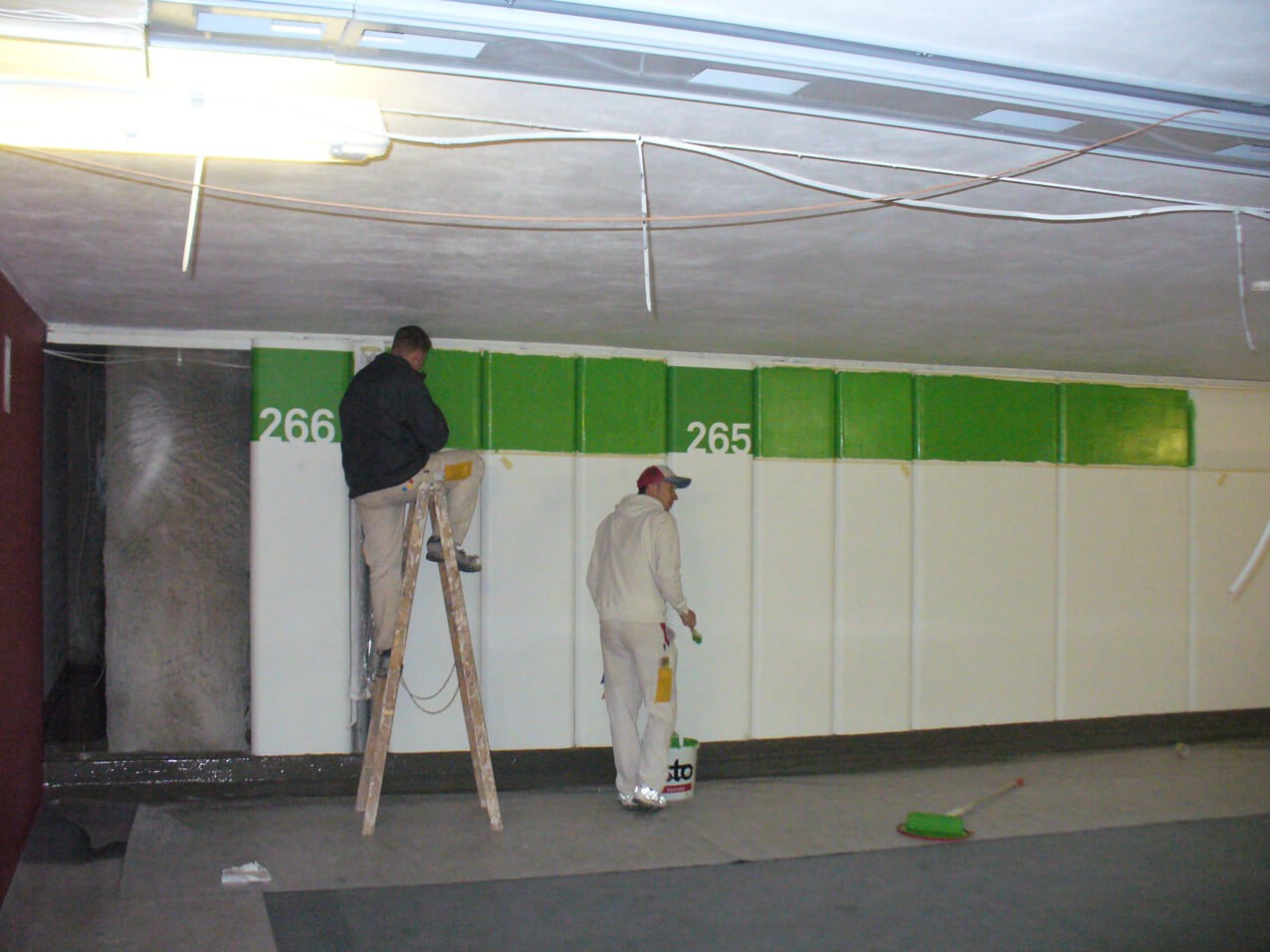 Lackier Schablone Klebe Folie; Klebeschablone Laufmeter von Rolle auf Beton Fassade Wand zum Ausmalen