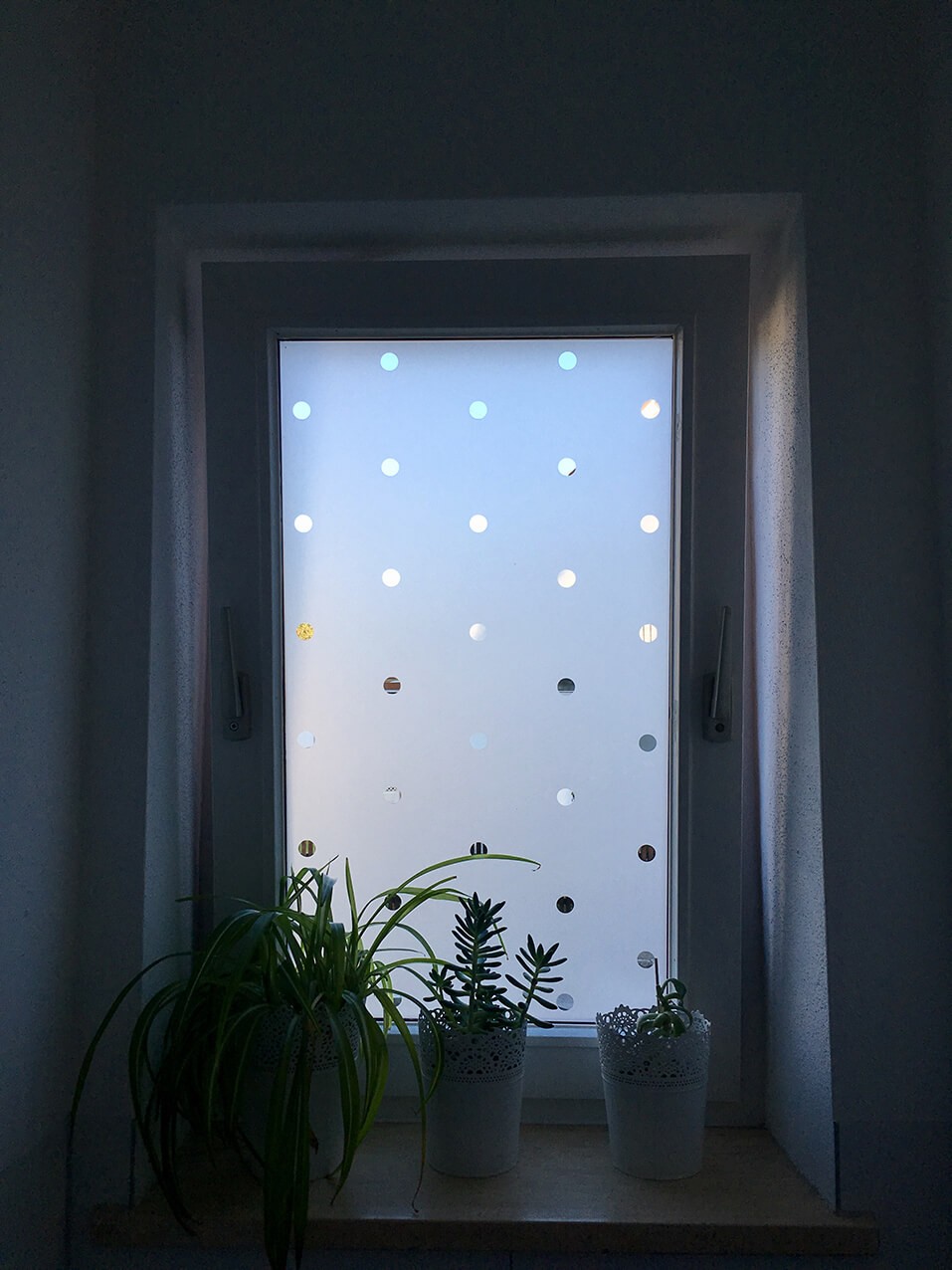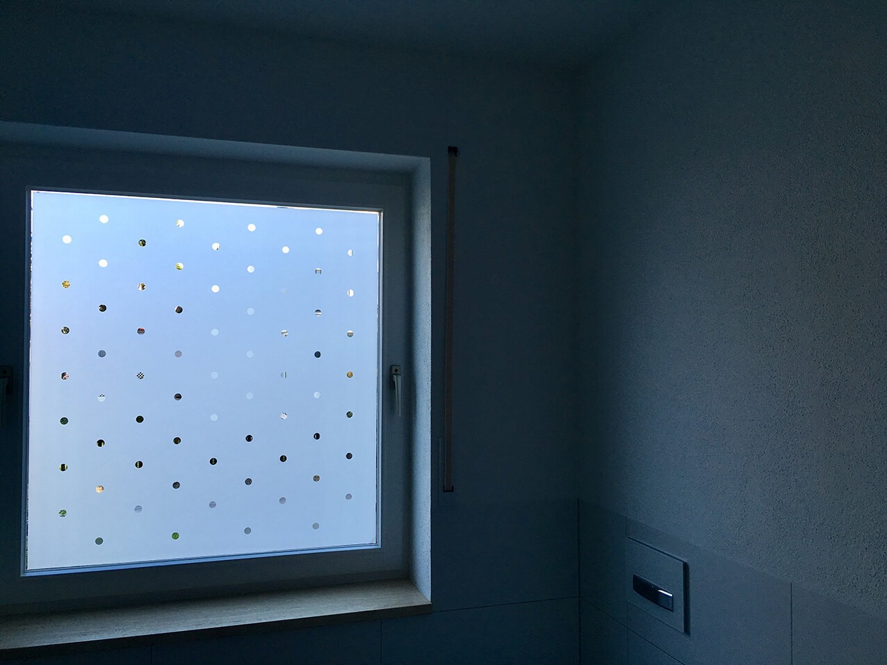 Sichtschutzfolie Motivfolie Punkt Kreis Mattglaseffekt Qualitäts-Klebefolie Silbergrau Fein mit individuellen Zuschnitt, Glasdekorfolie billig gut im Folienshop