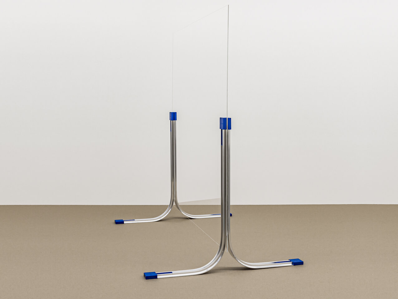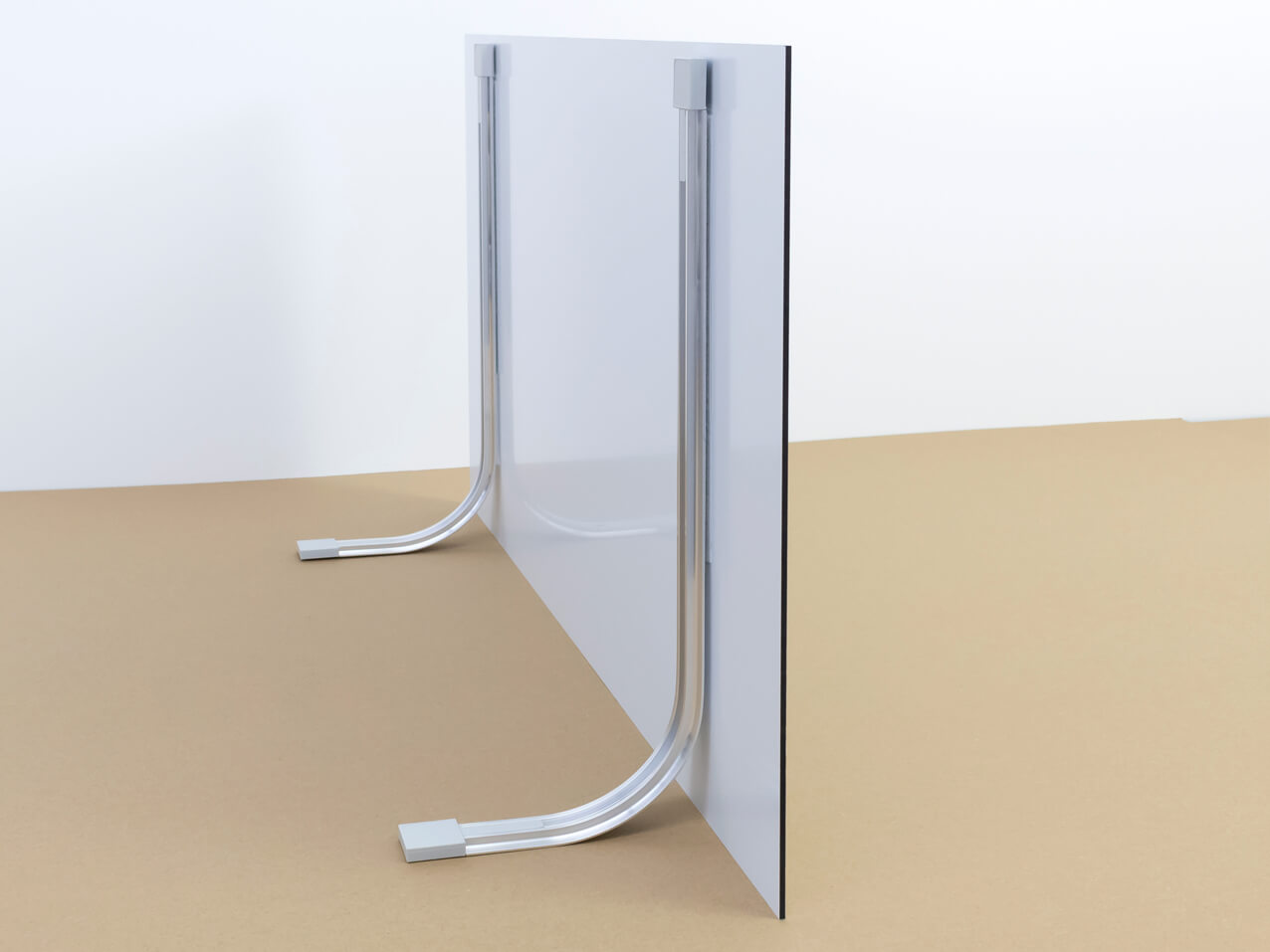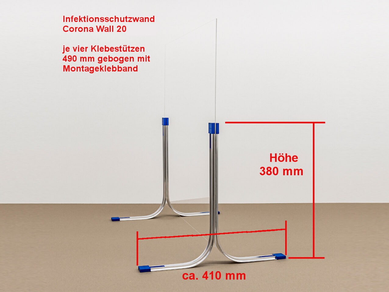 - Bausatz aus 2 Klebestützen Profil 8 pressblank ca. 43,5 cm Hoch mit Fixierpunkte zum Halten auf dem Tisch, Endkappen oben, Montageklebeband, Plexiglas 2 mm