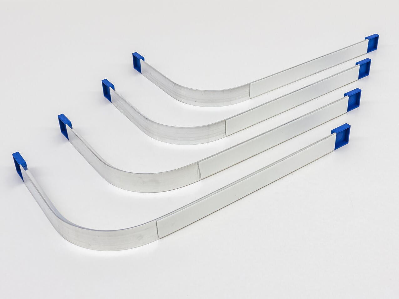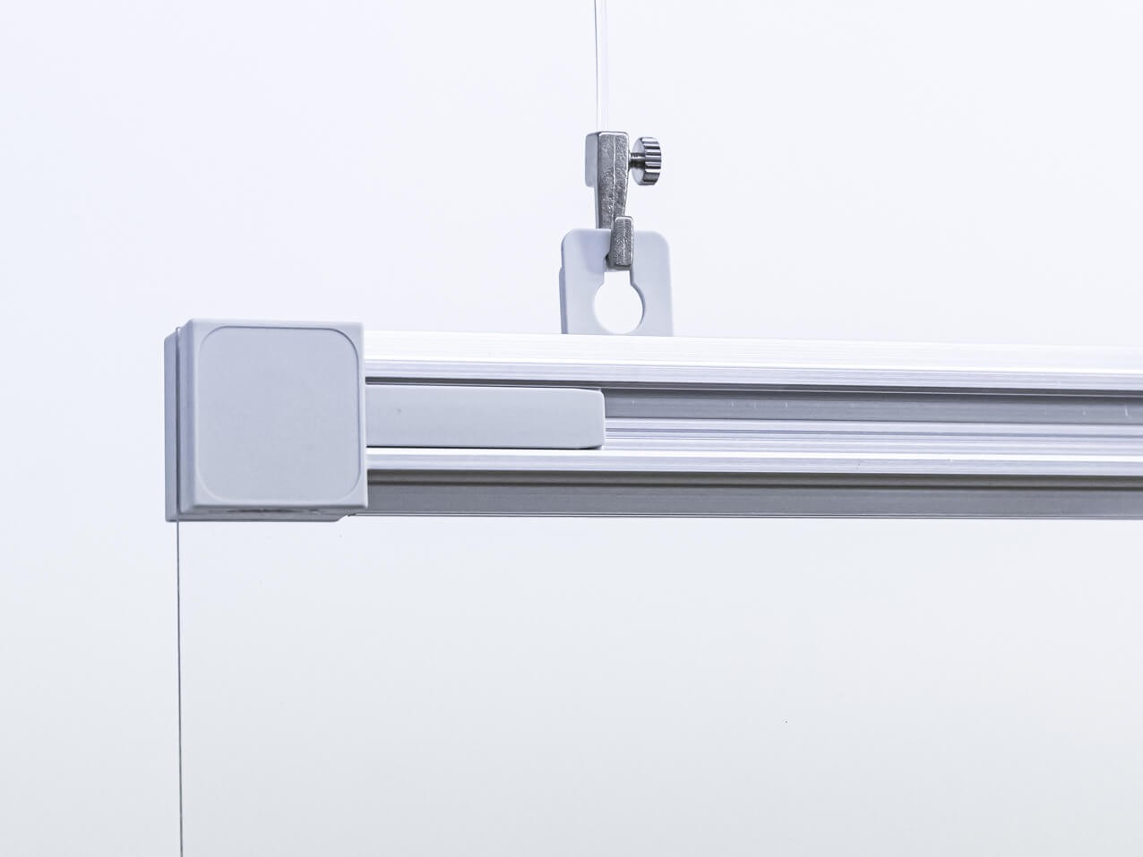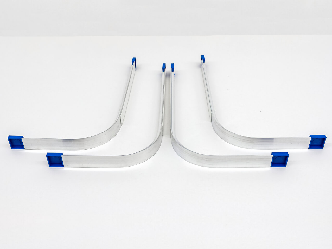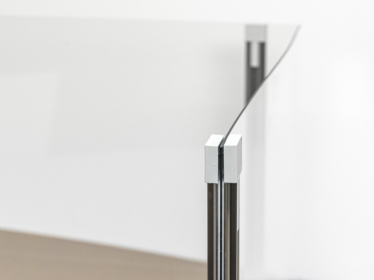 - Bausatz aus 2 Klebestützen Profil 8 pressblank ca. 43,5 cm Hoch mit Fixierpunkte zum Halten auf dem Tisch, Endkappen oben, Montageklebeband, Plexiglas 2 mm