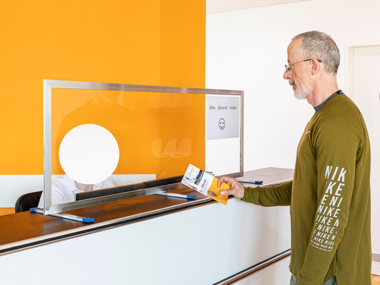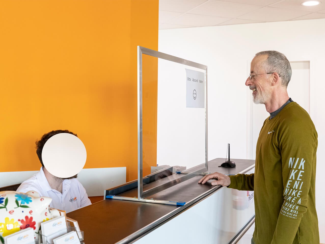 - der Hustschutz, Infektionsschutzwand dient als Trennwand an Kasse, zum Aufstellen auf dem Tresen in Behörden, Firma, Praxen in Apotheken, Tankstellen