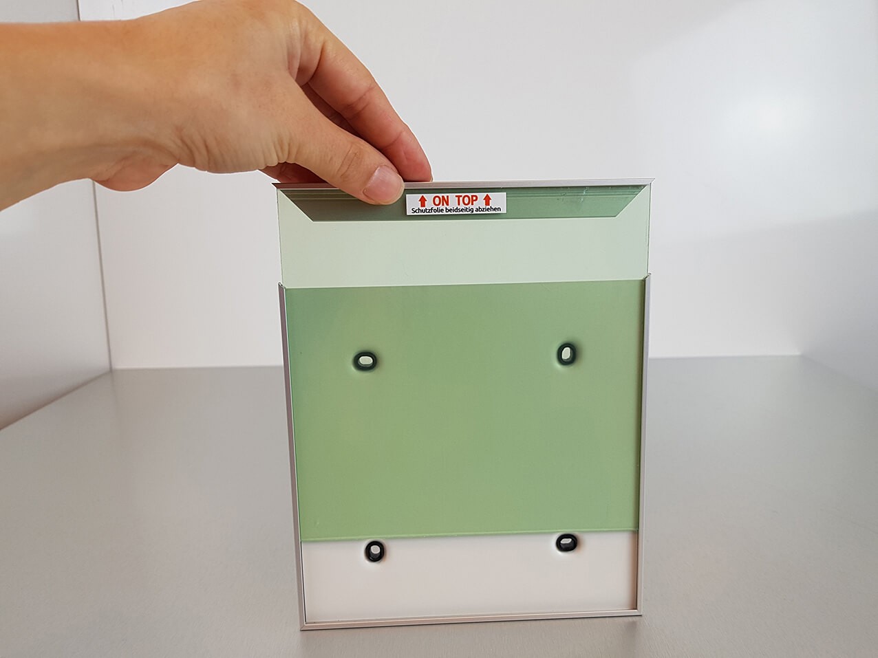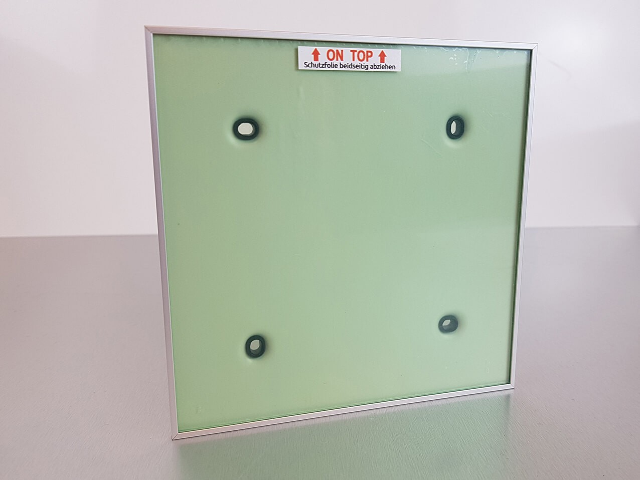 - innenliegende entspiegelte Acrylglasscheibe mit zweiseitiger Sicherungsnut