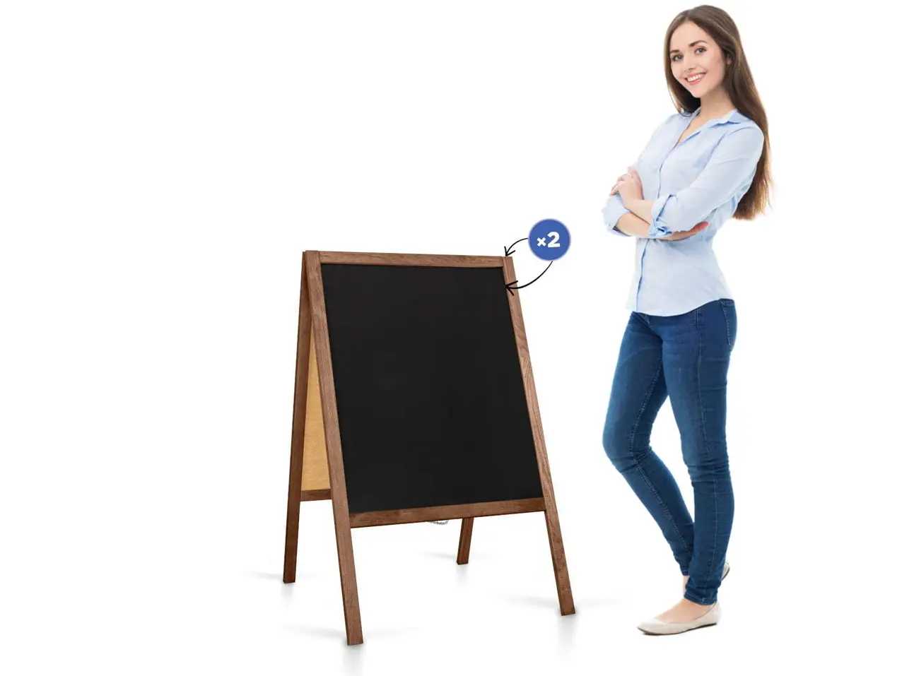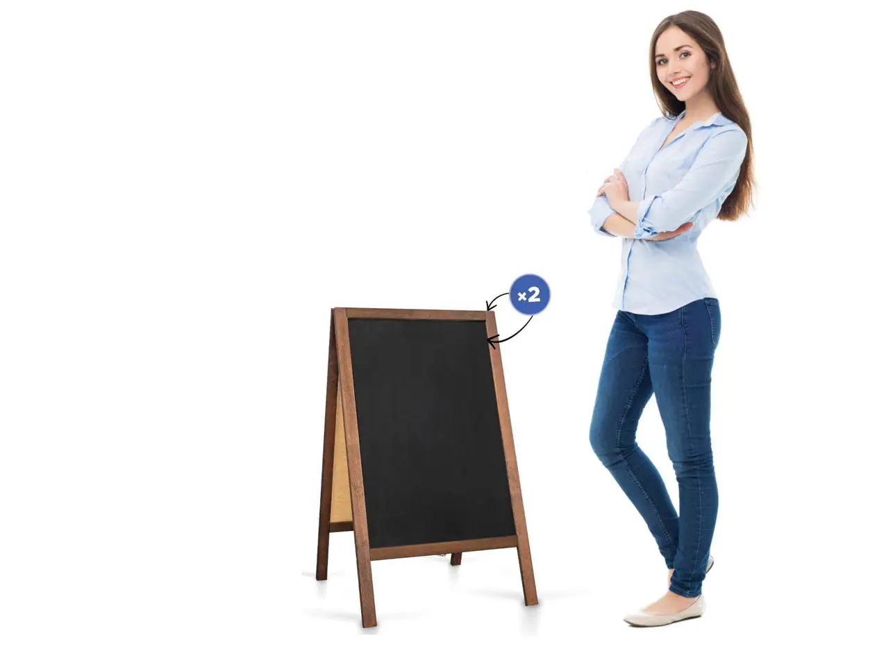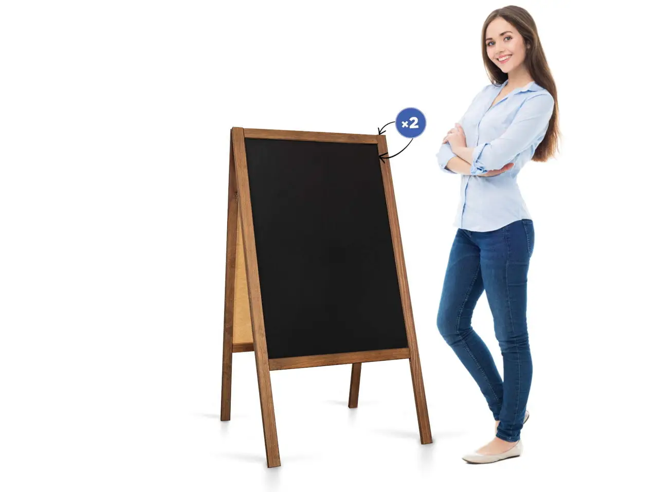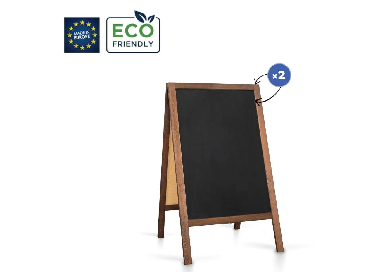 Stabiler Straßenaufsteller mit Kreidetafel mit braunen Holzrahmen