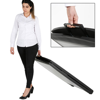 • Inkl. Griff oben und zwei Rollen erleichtern den Transport