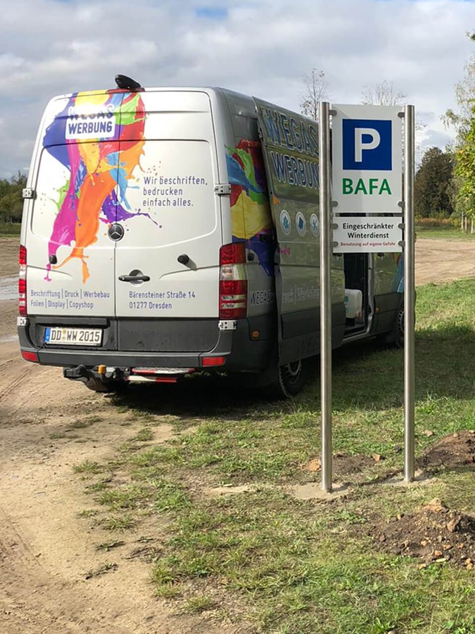 • Beleuchtungen, Schilder, Gestelle, Werbeanlagen montieren wir günstig in Dresden, Sachsen und auch bundesweit, bitte Anfragen