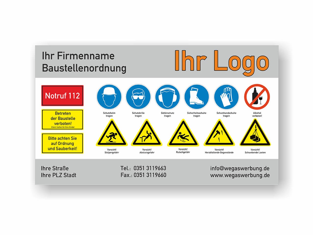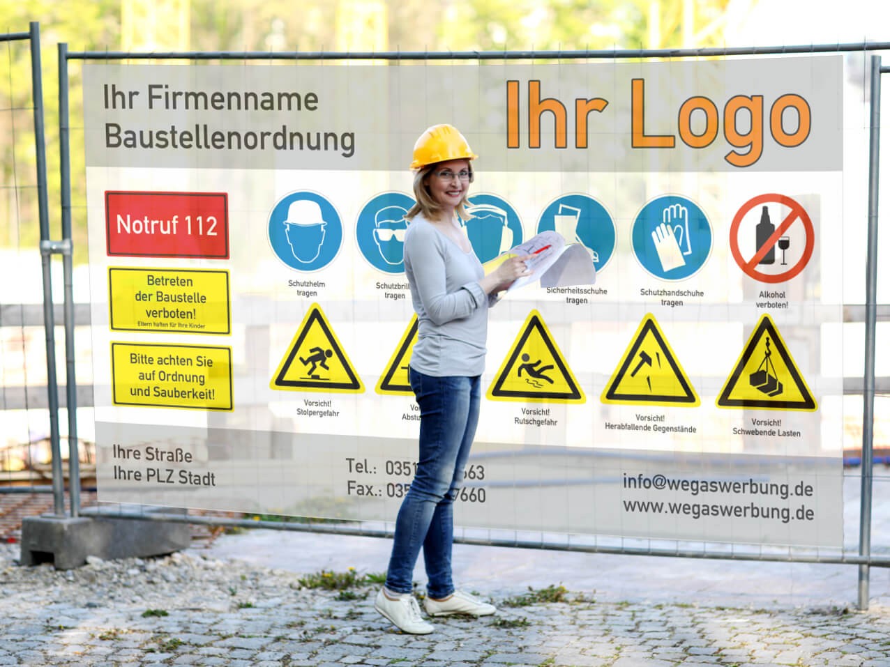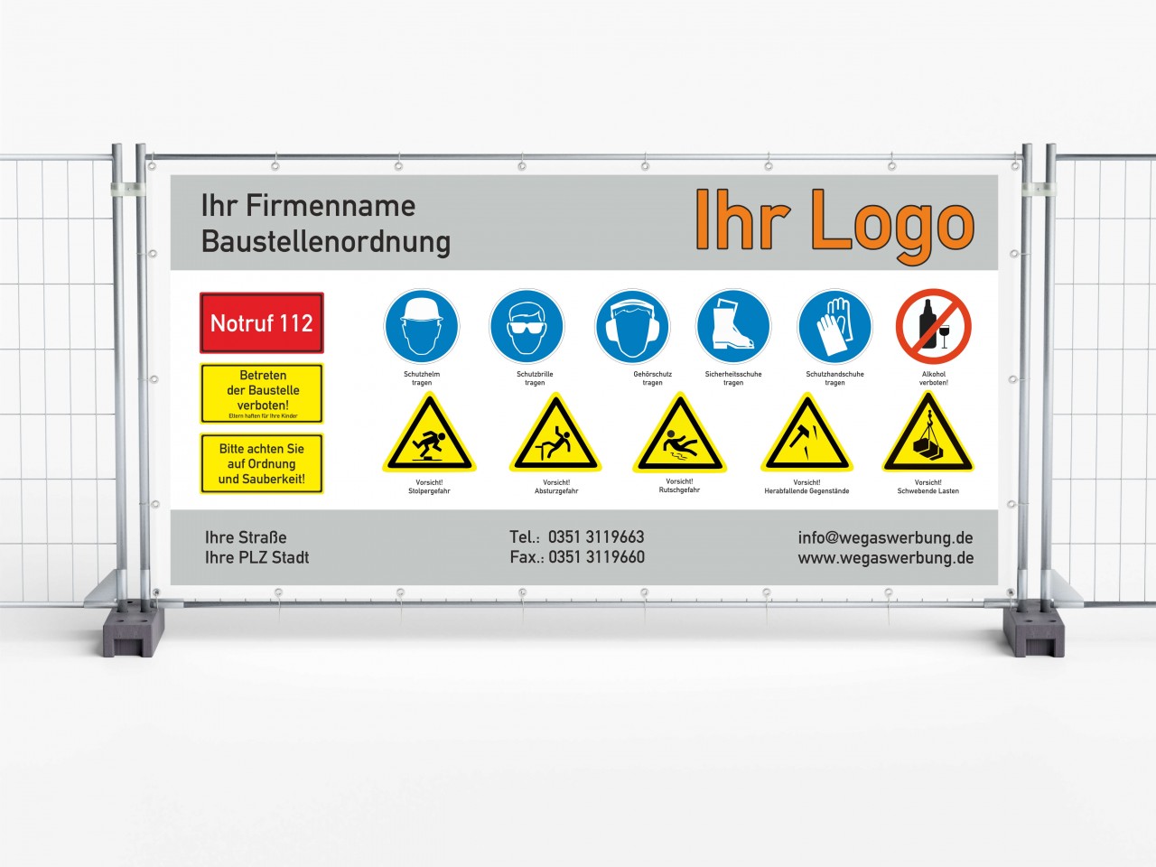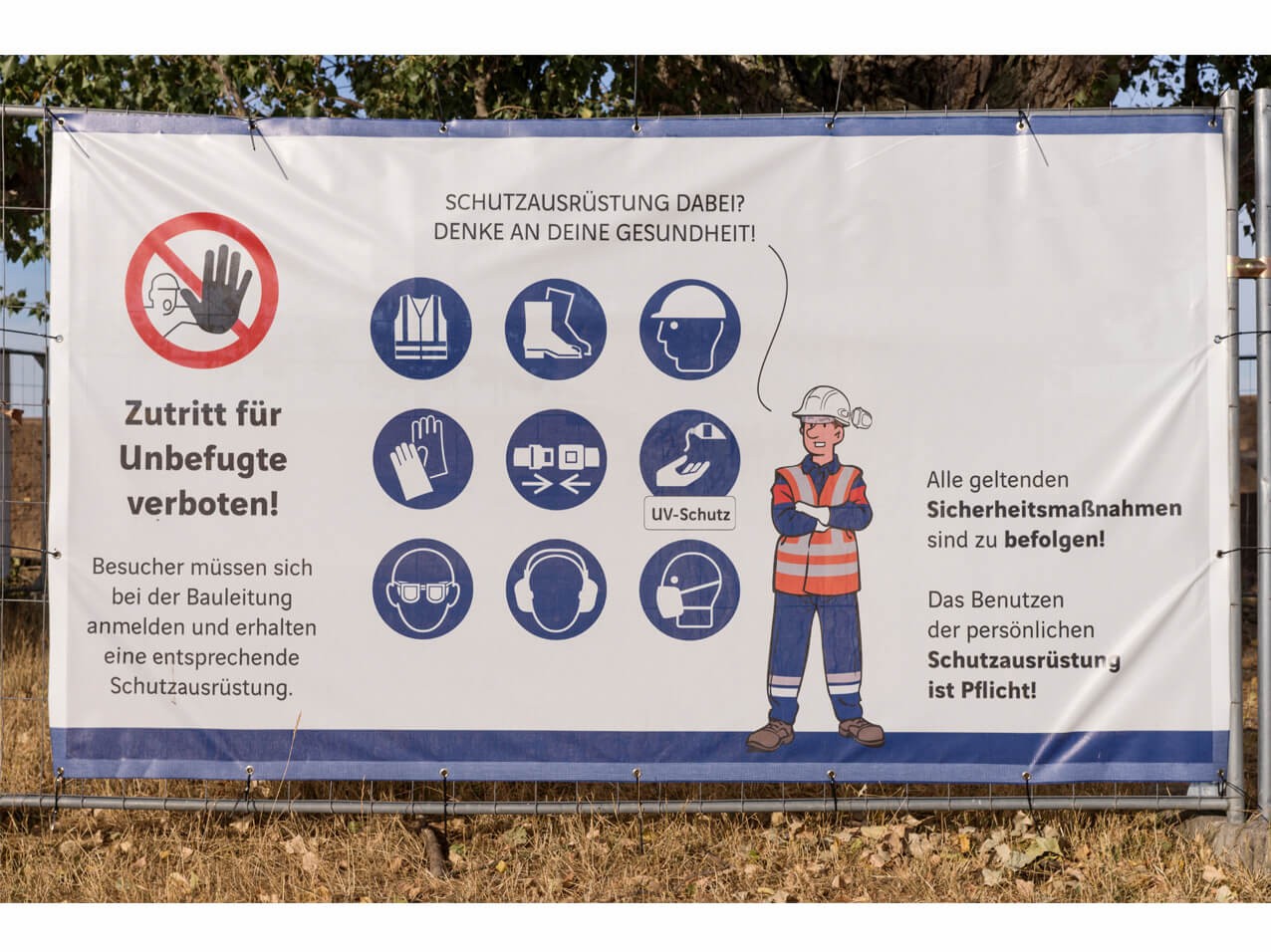 Wir drucken für Sie Bauzaunbanner mit Baustellenordnung