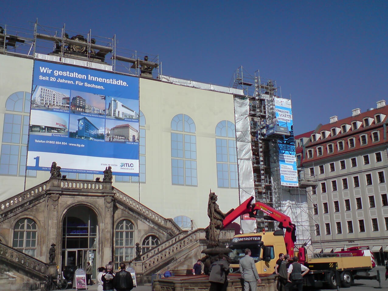 • Werbebanner, Gerüstplanen, Planendruck, XXL Druck, Digitaldruck, etc. für Bauzaun, Baugerüst, Absperrgitter, oder