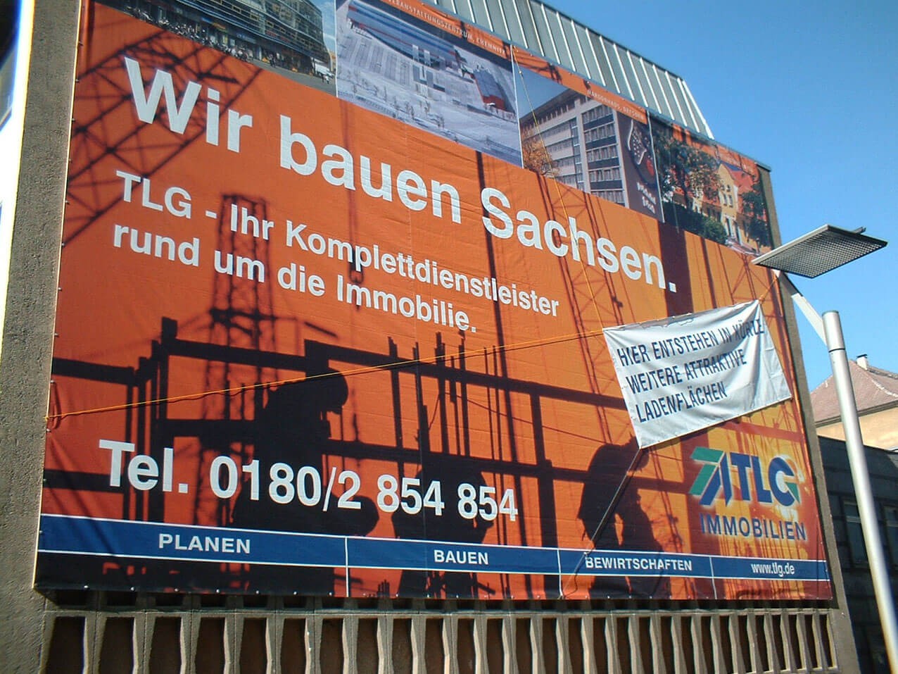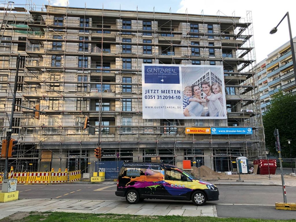 • POS Werbung, Mega Werbung, Baustellenwerbung, Hausfassadenwerbung, Vermietungsplane, Verkaufsplane