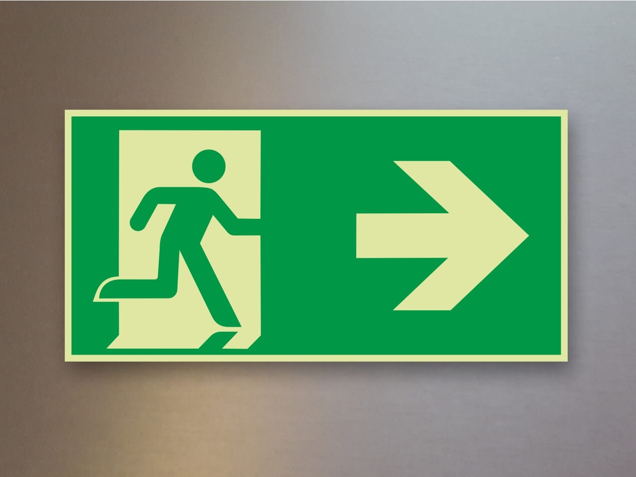 Rettungszeichen, Rettungszeichen, Sicherheitszeichen Rettungsweg Pfeil rechts E002 nachleuchtend