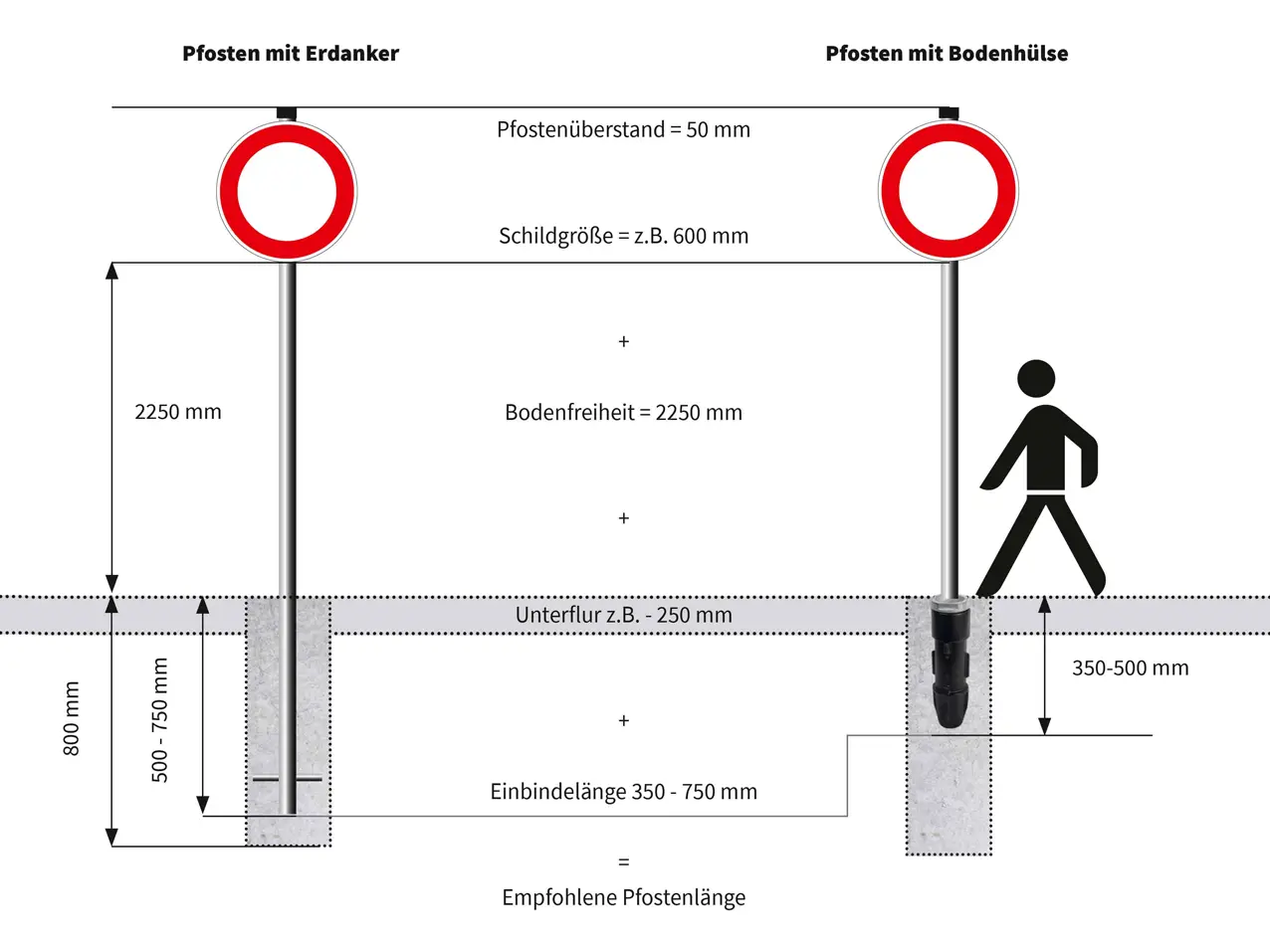 Produktinformationen "Rohrpfosten Stahl für Verkehrszeichen - alle Längen"