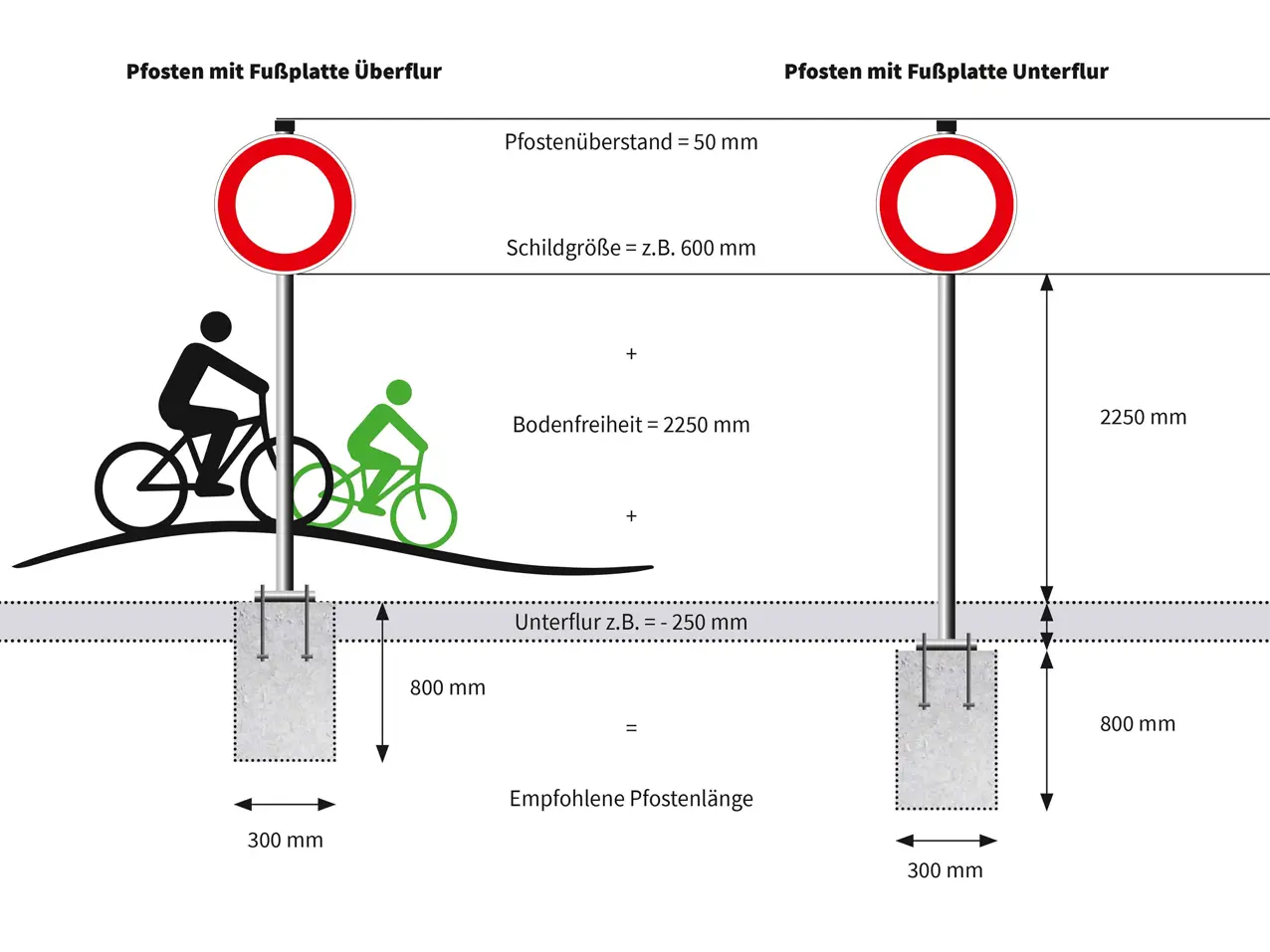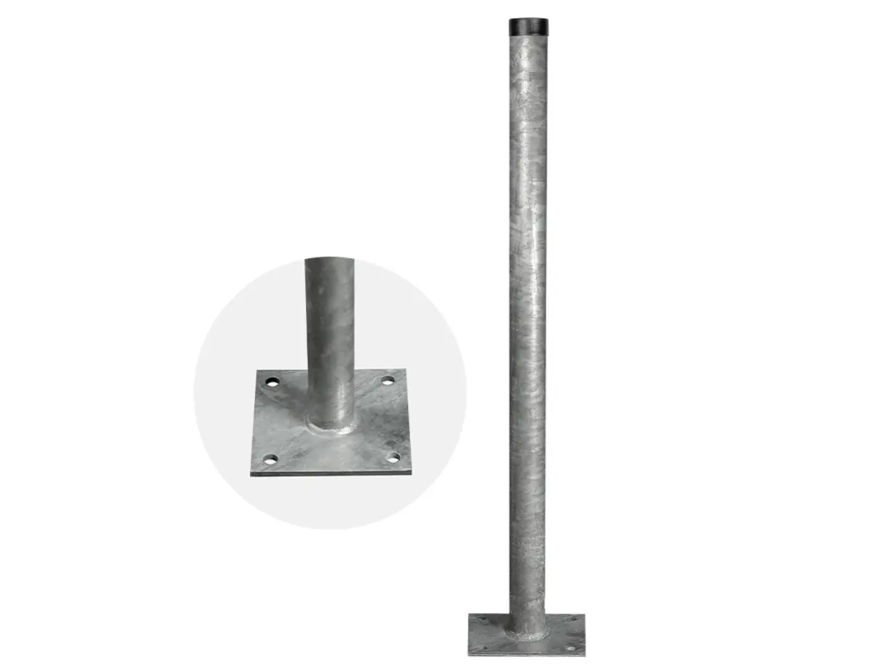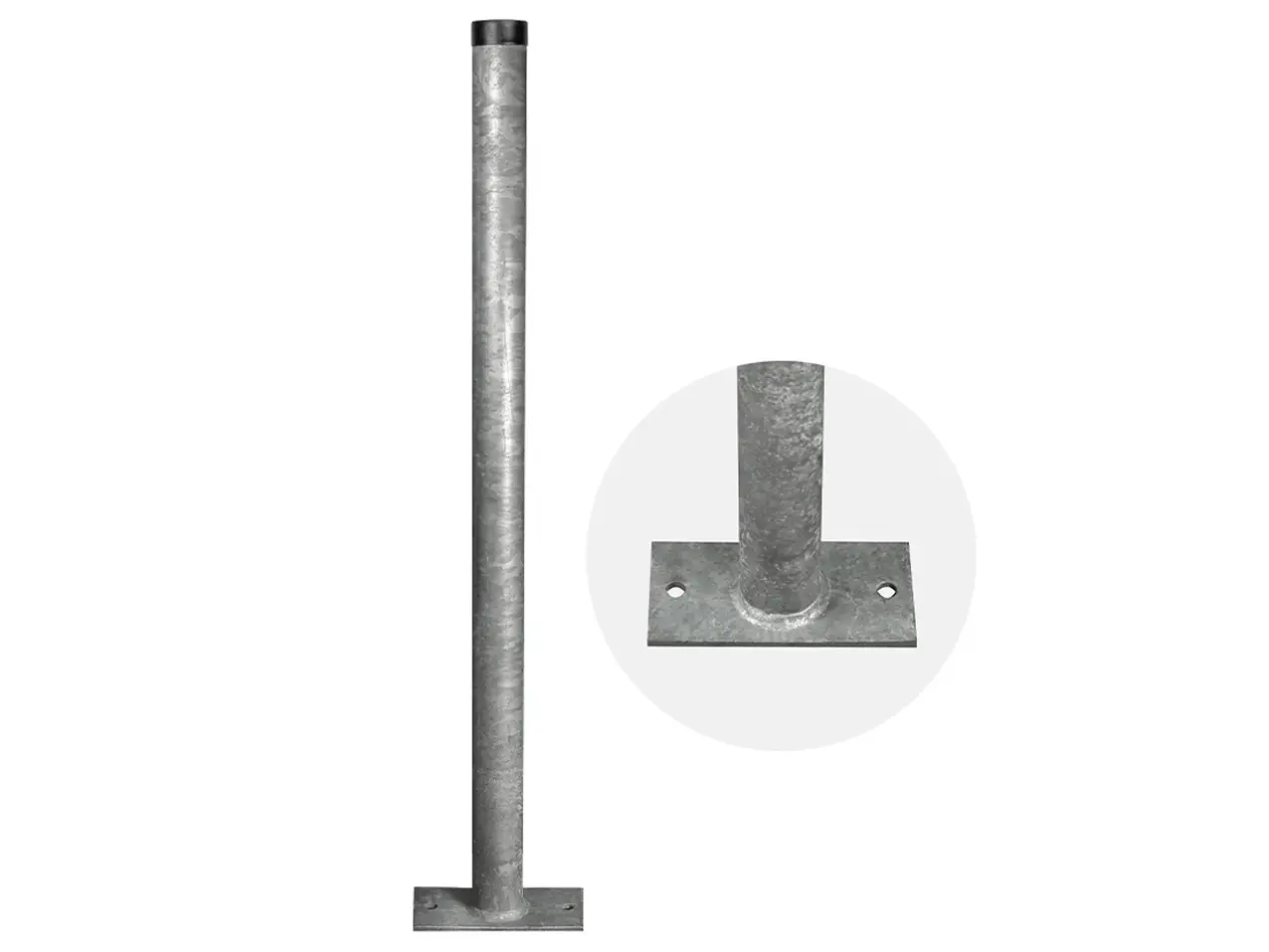 Produktinformationen "Rohrpfosten Stahl mit Fußplatte für Verkehrszeichen, Schild"