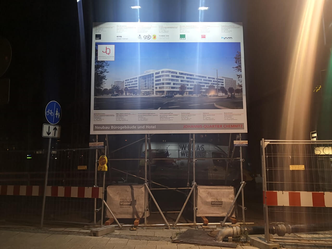 • Flutlicht für alle Bauschilder, Bautafeln, Orientierungstafel, Schilder, Werbeschild, Firmenschild, Hinweisschild, Fassadenbeschriftung