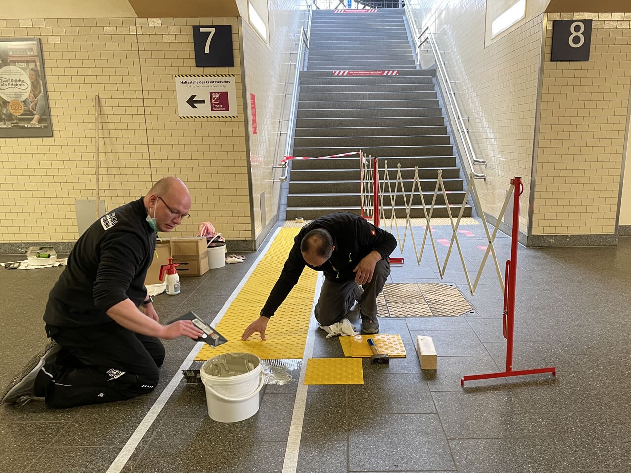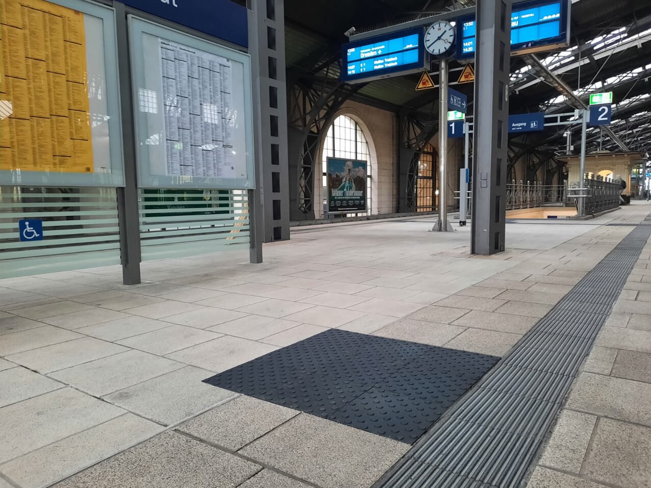 Taktile Bodenleitsysteme aus Leitstreifen, Rippen und Aufmerksamkeitsfelder, Noppen aus kontrastreichen optischen und taktilen Bodenindikatoren sind für Blinde und Sehbehinderte eine perfekte Hilfe sich eigenständig in Gebäuden, im öffentlichen Raum, sowie an Haltestellen Bahnhöfen zu bewegen. Die Installation auf vielen Böden ist nachträglich möglich.