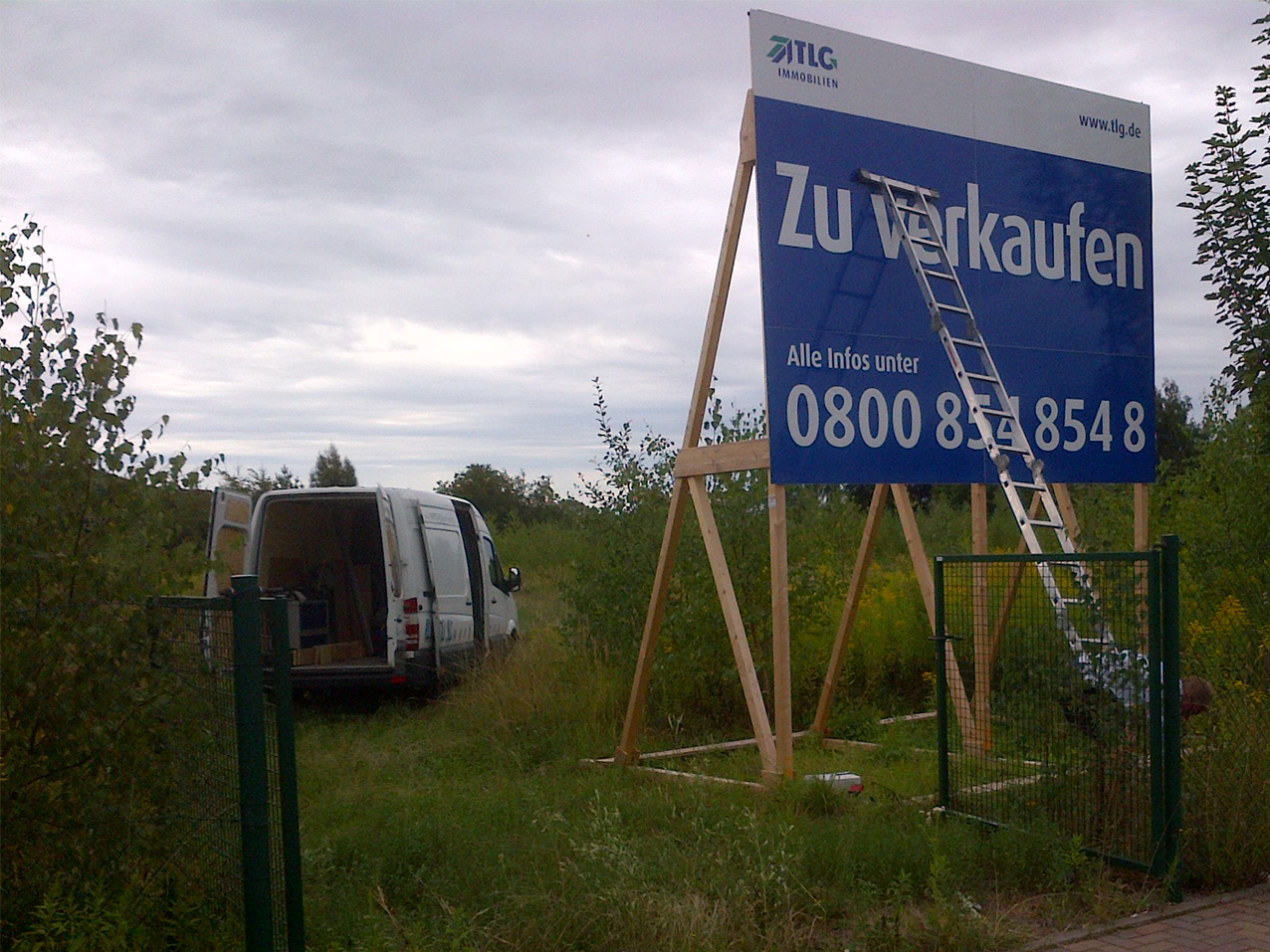 - Sie können von uns auch eine komplette Herstellung von Bauschilder, Bautafeln, Bauschildanlagen, Gestelle in Holz, Aluminium, feuerverzinkten Stahl erhalten