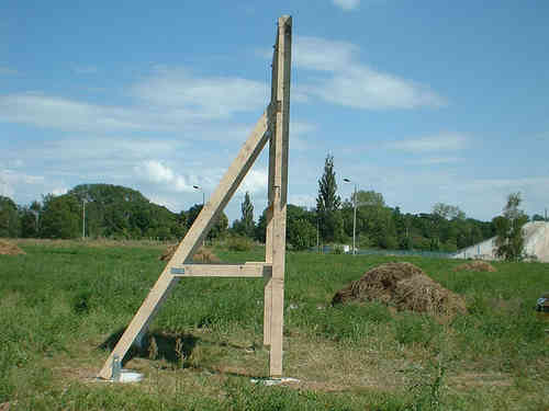 - 1 Binder (Stütze, Säule) aus Holz vormontiert (Dreieck), 2,50 x 5,00 m (B x H)