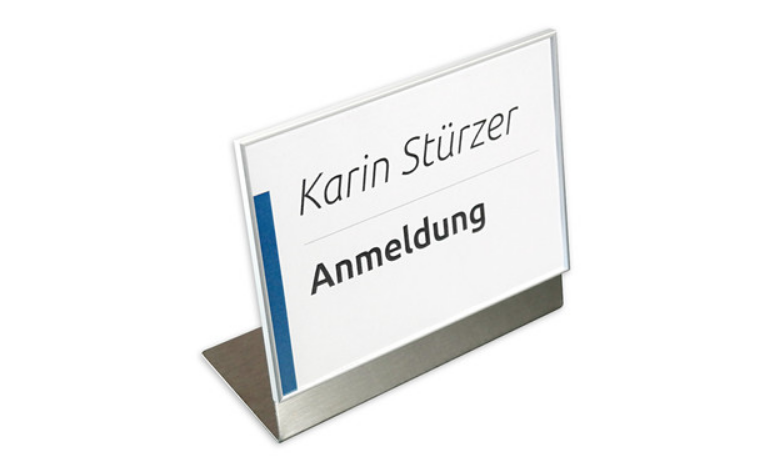 - Orientierungsschilder als Tischschild mit transparente spiegelfreie Schutzfolie, 3 mm Acrylglas