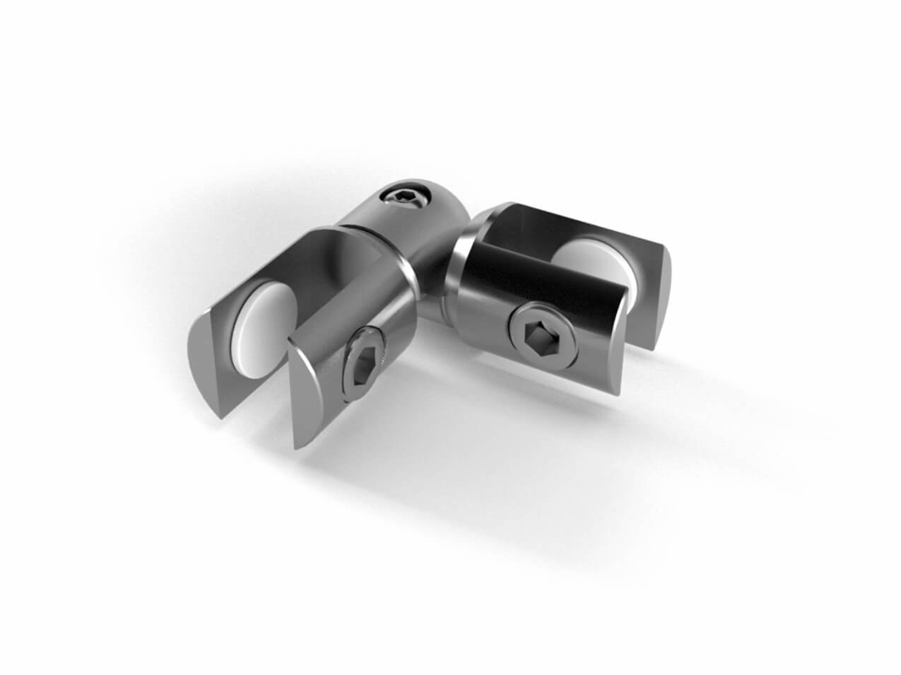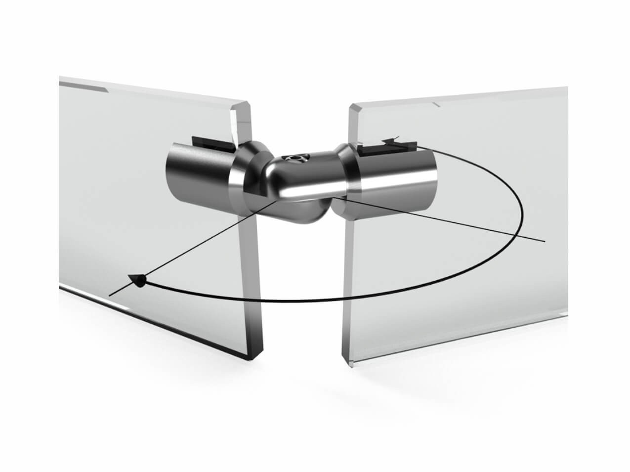 - Schildhalter als Eckverbindung mit Scharnier kann zwei Scheiben im Winkel von 90° - 270° klappbar, schwenkbar befestigt werden
