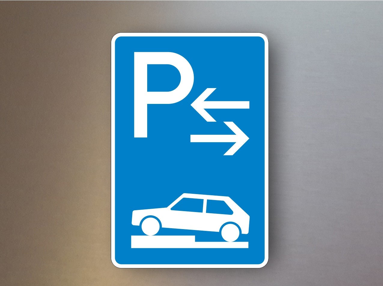 Verkehrsschild Verkehrszeichen Verkehrsschilder Parkplatzschilder Parken auf Gehwegen halb quer zur Fahrtrichtung links Mitte 315-73